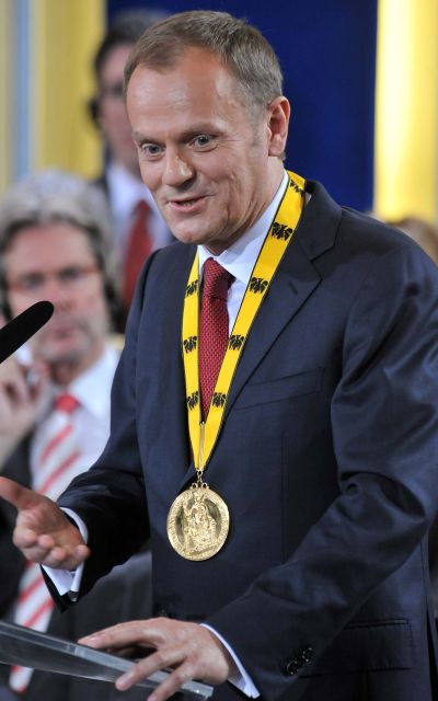 W 2010 roku Donald Tusk został uchonorowany prestiżową nagrodą im. Karola Wielkiego, jako trzeci Polak, obok W. Geremka i Jana Pawła II.